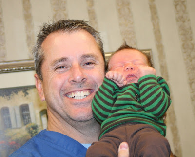 Brody is two weeks old today! I can't believe it! I had my post-op appointment today and got a picture of Dr. N and Nurse F for Brody's baby book. Dr. N is a wonderful doctor and he was the first person to find Gavin's condition and sent us to the cardiologist that found Brody's VSD's.